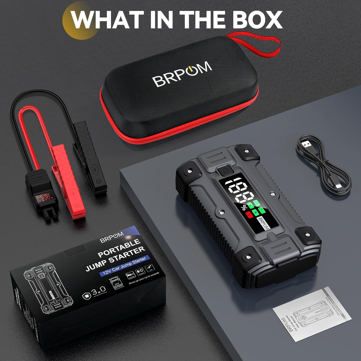 Car Jump Starter, 8000A Peak 26800mAh (Up to All Gas or 10.0L Diesel Engine, 50 Times) 12V Auto Booster Battery Charger Jump Box with Quick Charger Smart